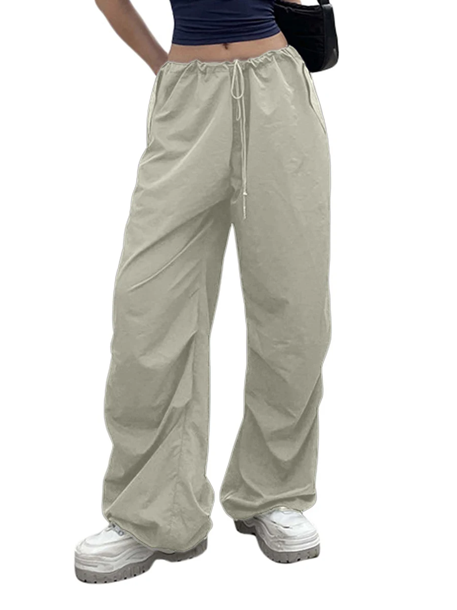 Женские свободные брюки-карго в стиле хип-хоп, однотонные повседневные джоггеры на шнуровке, брюки с широкими штанинами для улицы