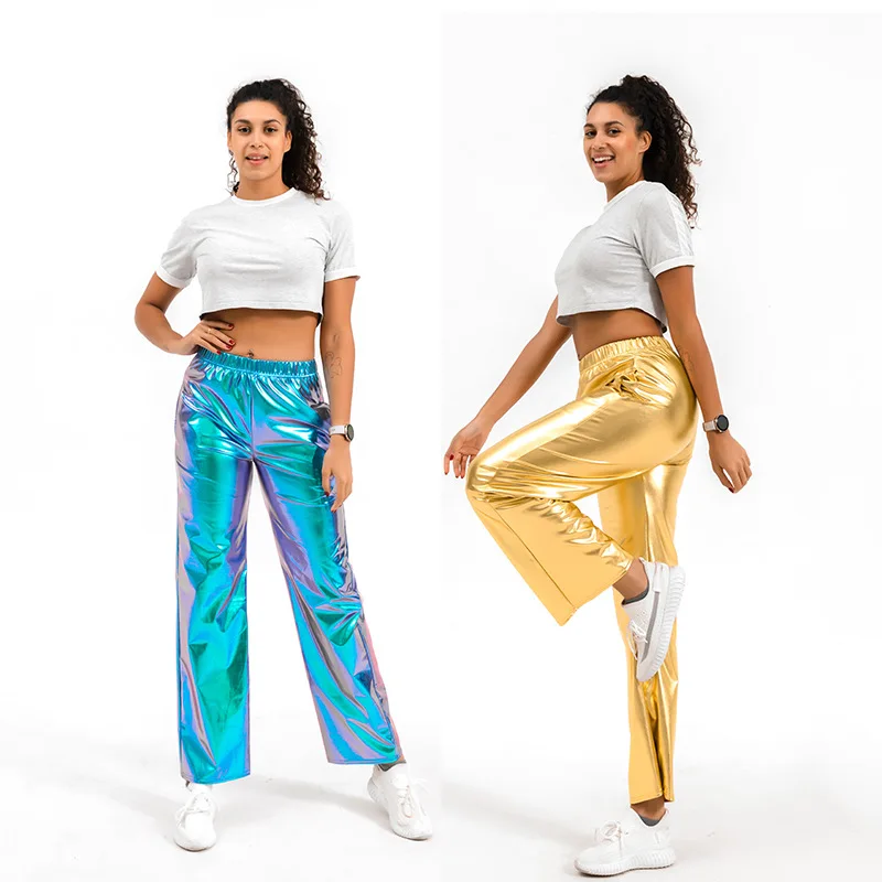 Женские свободные брюки с высокой талией и ярким градиентом