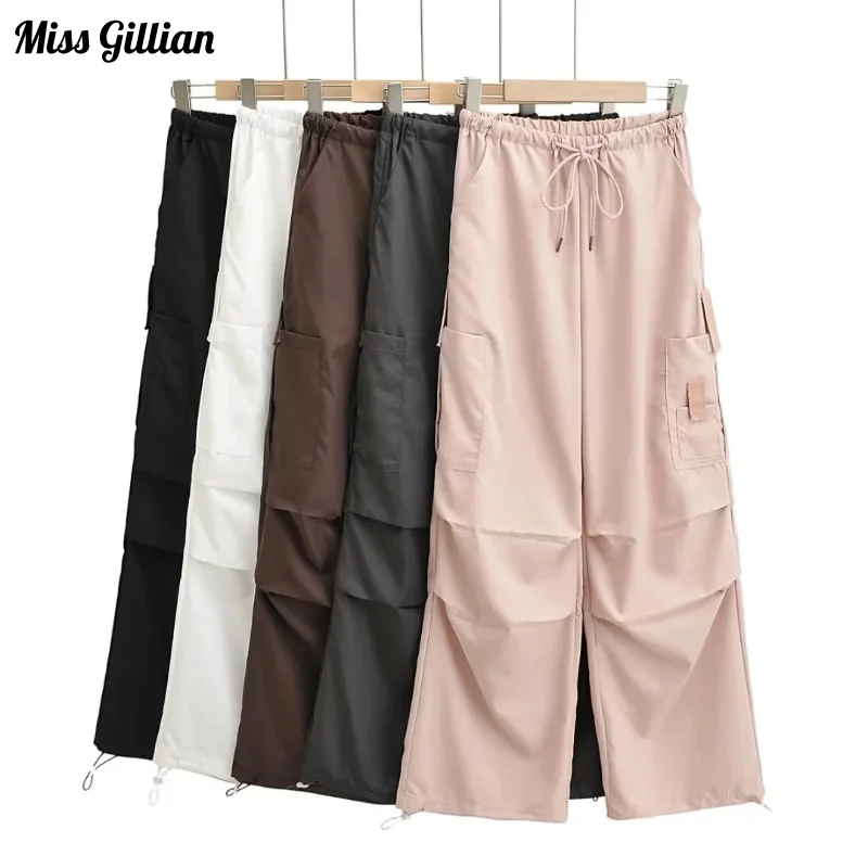 Женские свободные спортивные брюки с завышенной талией, уличная одежда, винтажные мешковатые широкие брюки, свободные парашютные брюки