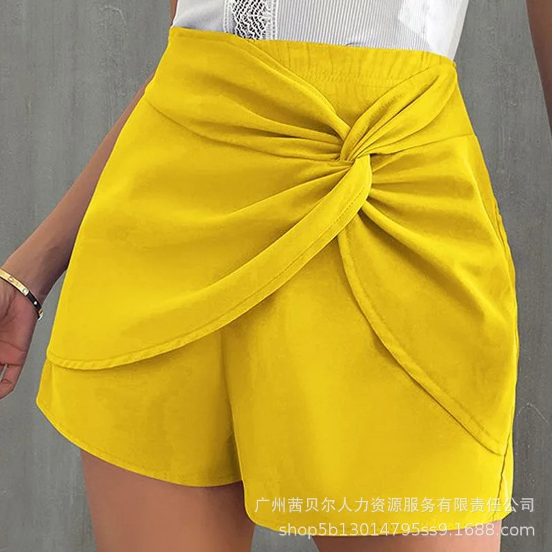 Женские свободные шорты с высокой талией, однотонные повседневные Прямые шорты с эластичным поясом, лето 2023
