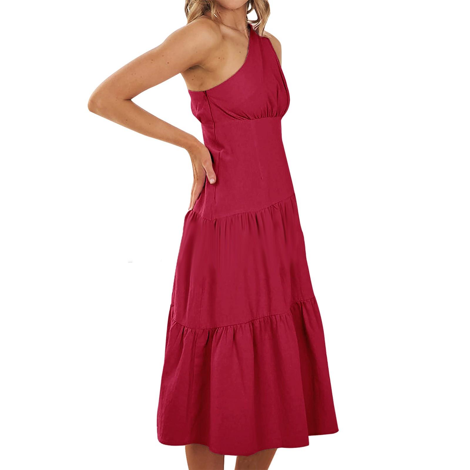 Женские сексуальные платья на одно плечо, летнее элегантное многоуровневое плиссированное сексуальное вечернее коктейльное платье без рукавов миди XL красный