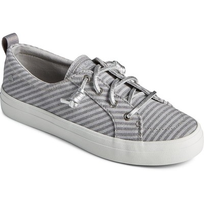 Женские серые повседневные и модные кроссовки Sperry Crest V 8 Medium (B,M) BHFO 3220, Metallic stripe blue/ silver, Crest V