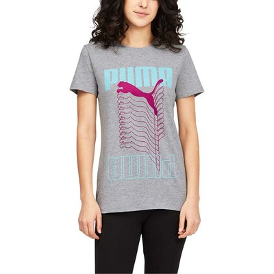 Женские серые повседневные топы Puma Cat Ladder Crew Neck с коротким рукавом 671869-04, Grey