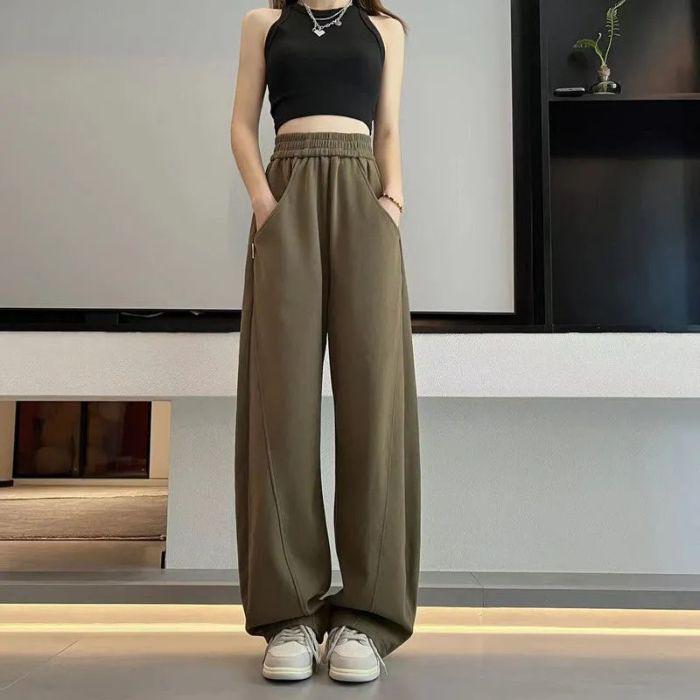Женские серые ретро спортивные штаны с высокой талией - Весенне-летне-осенние повседневные свободные широкие брюки-бананы X-Large армия зеленый