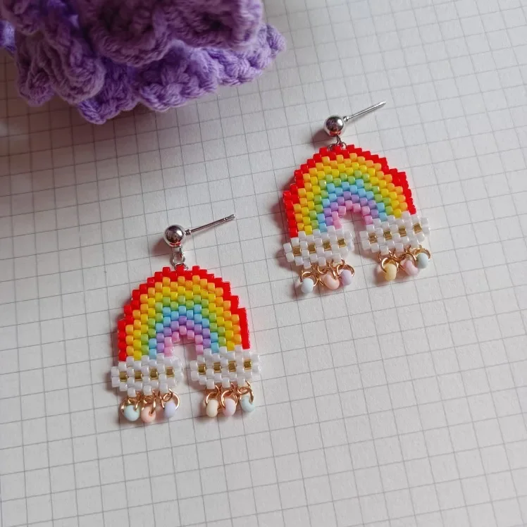 Серьги из рисовых бусин Цвета радуги Когда креативные контрактные серьги ручной работы в богемном национальном стиле, женские серьги из бисера из сплава