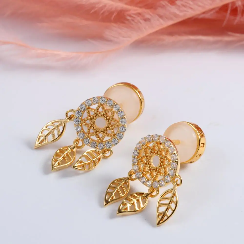 Женские серьги-гвоздики «Ловец снов» из серебра 925 пробы с белыми фианитами