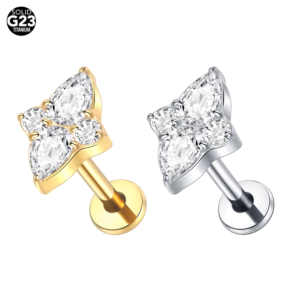 Женские серьги-гвоздики для имплантации, украшение для пирсинга с искусственным цирконием для губ, козелка уха, тела, имплантат, 1/5 шт.