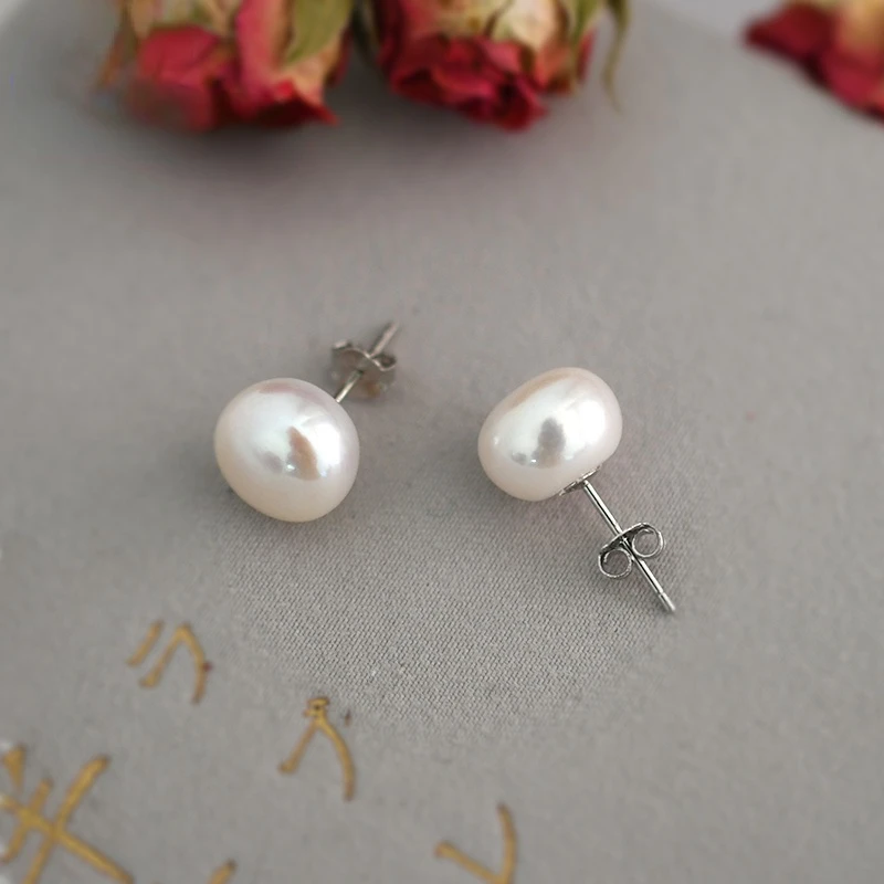 Женские серьги-гвоздики из серебра 2022 пробы с натуральным пресноводным жемчугом