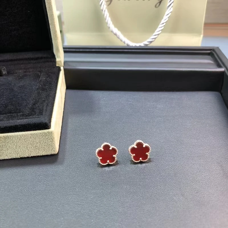 Женские серьги-гвоздики из серебра 2023 пробы с красным агатом