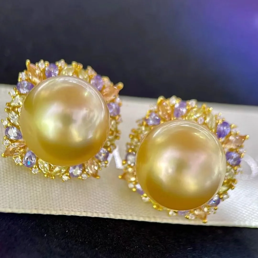 Женские серьги-гвоздики из серебра 925 пробы с золотым жемчугом