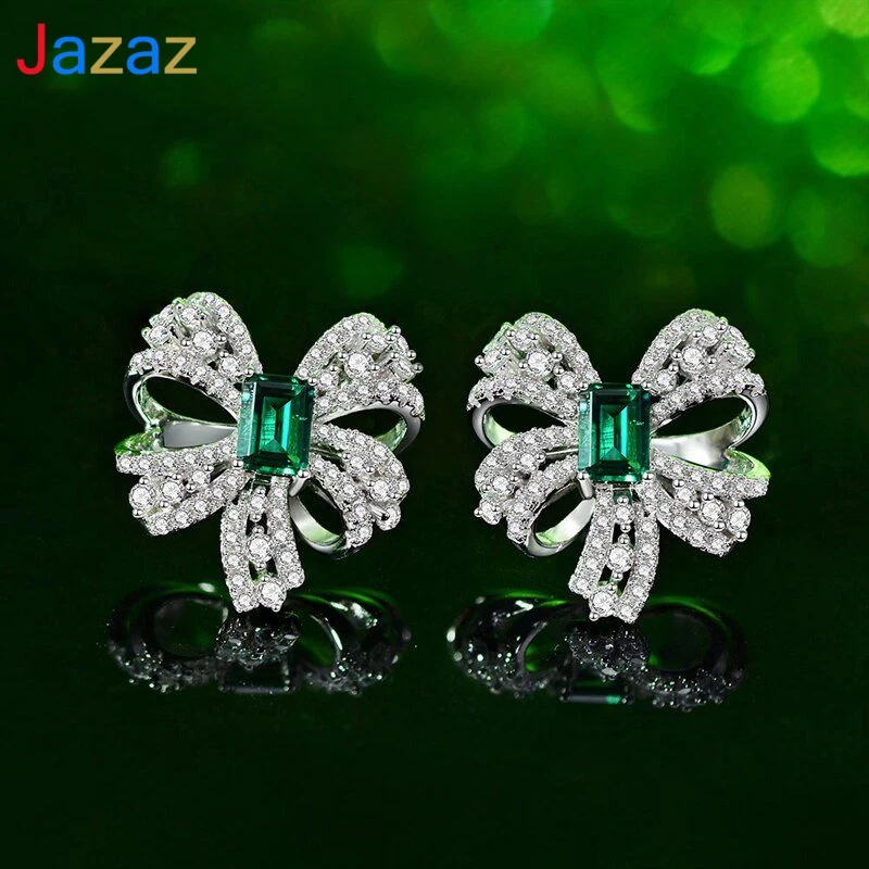 Женские серьги-гвоздики из серебра 925 пробы с изумрудом