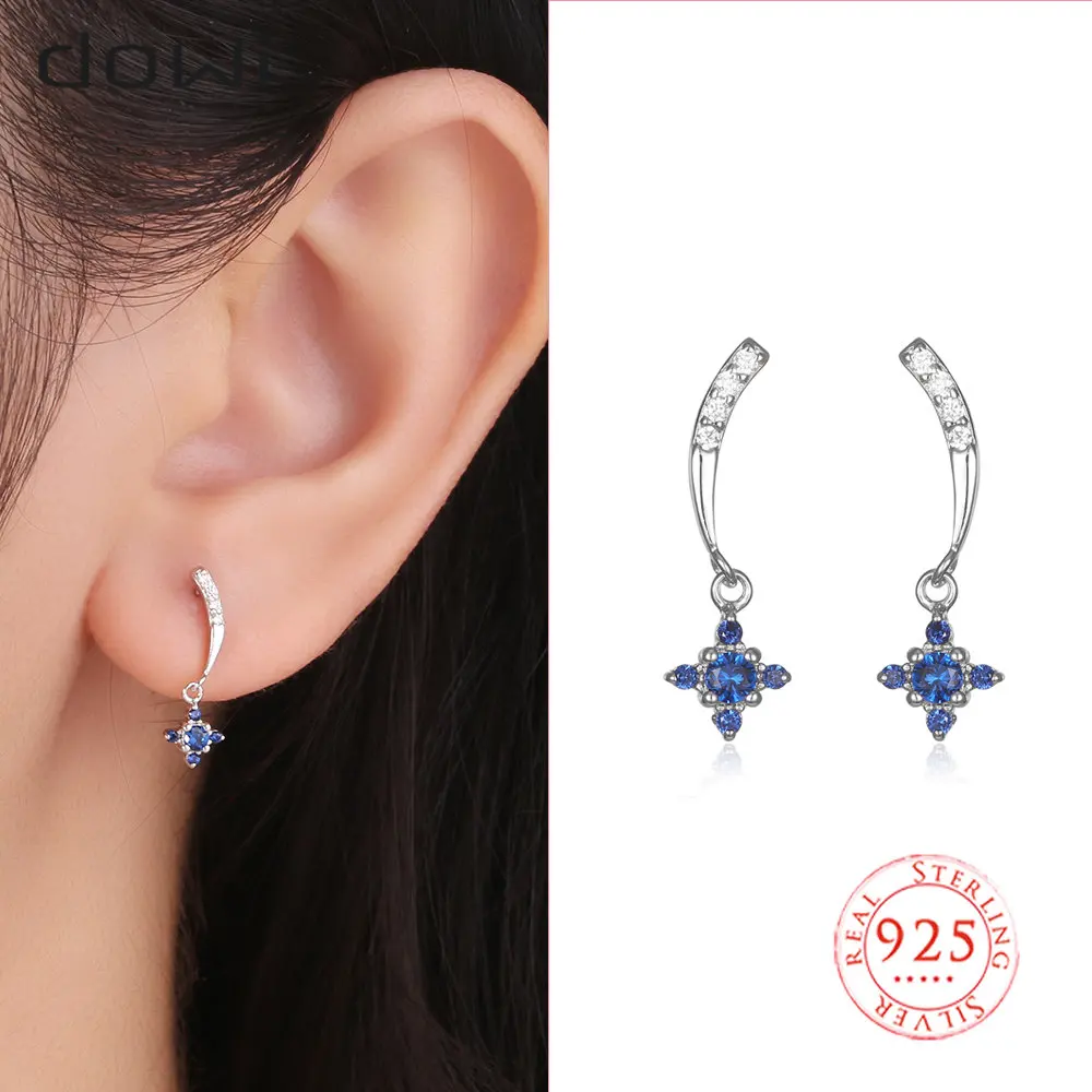 Женские серьги-гвоздики из серебра 925 пробы с синим цирконием