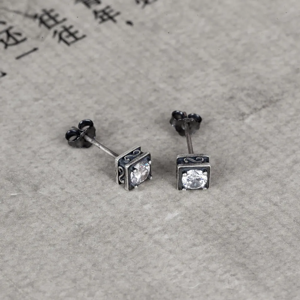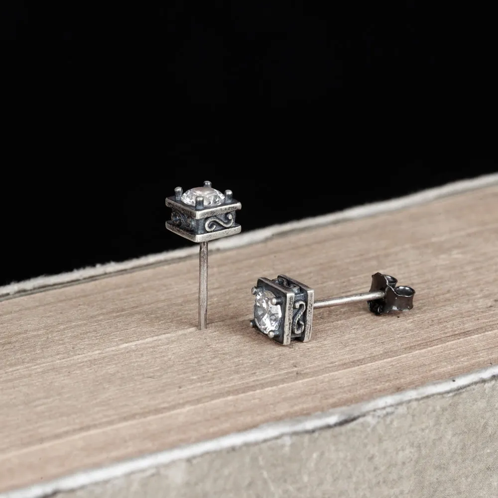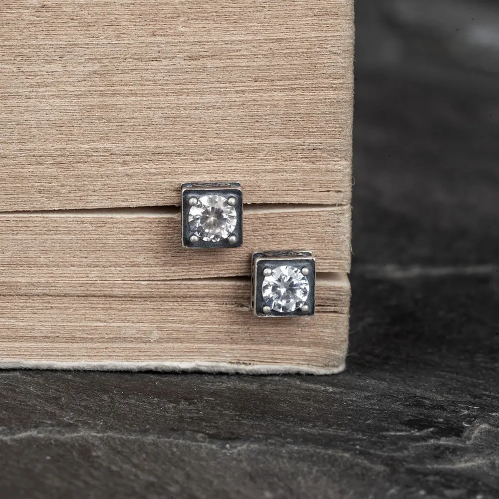 Женские серьги-гвоздики из серебра 925 пробы с цирконом