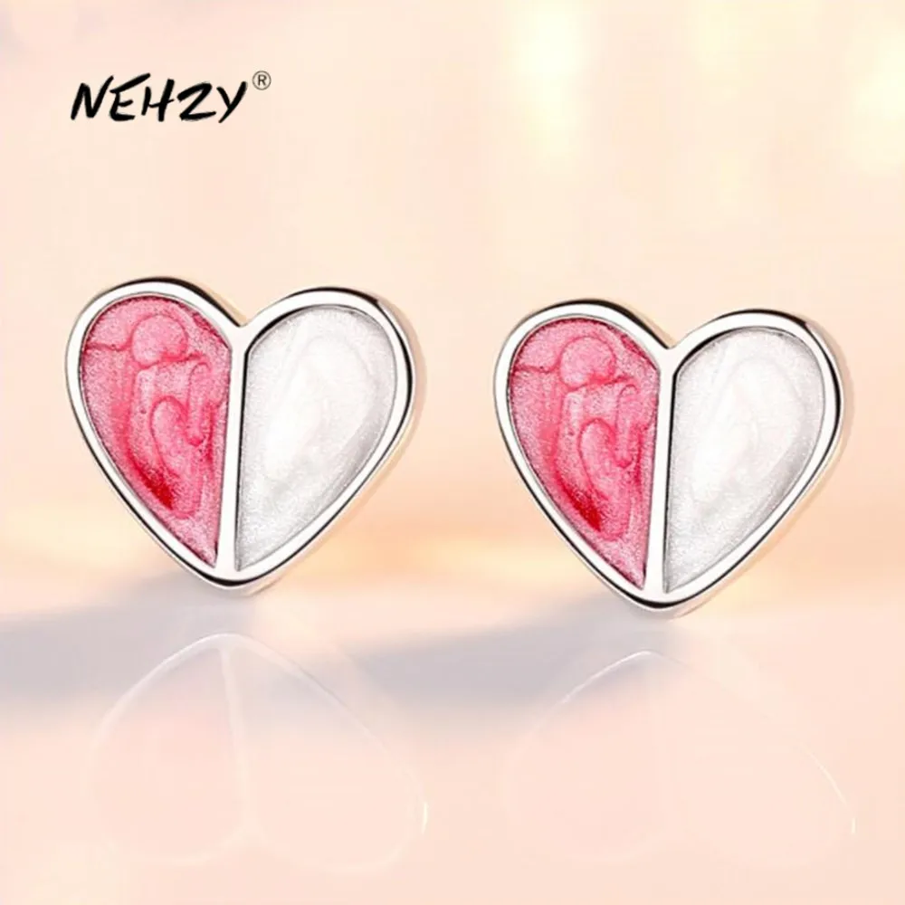 Женские серьги-гвоздики серебряного цвета с цирконом в форме сердца