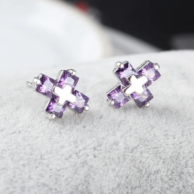 Женские серьги-гвоздики с двойным крестом стразы, в готическом стиле