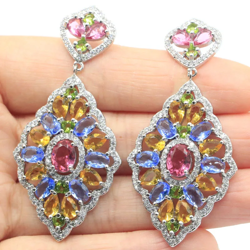 Женские серьги из серебра 925 пробы, с сиреневым танзанитом, розовым турмалином, цитрином и Перидотом