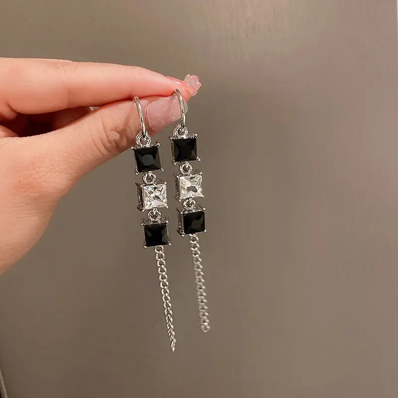 Женские серьги-кисточки с черным прозрачным цирконом, элегантные длинные серьги контрастных цветов, 2022