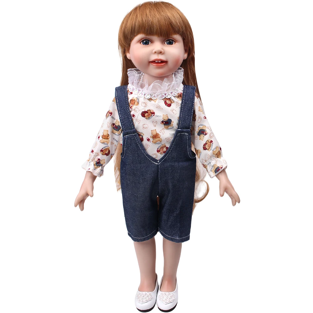 Кукольная одежда для девочек 18 дюймов, комбинезон с мультяшным медведем и штаны, детские игрушки для новорожденных, аксессуары, куклы для младенцев 43 см c687