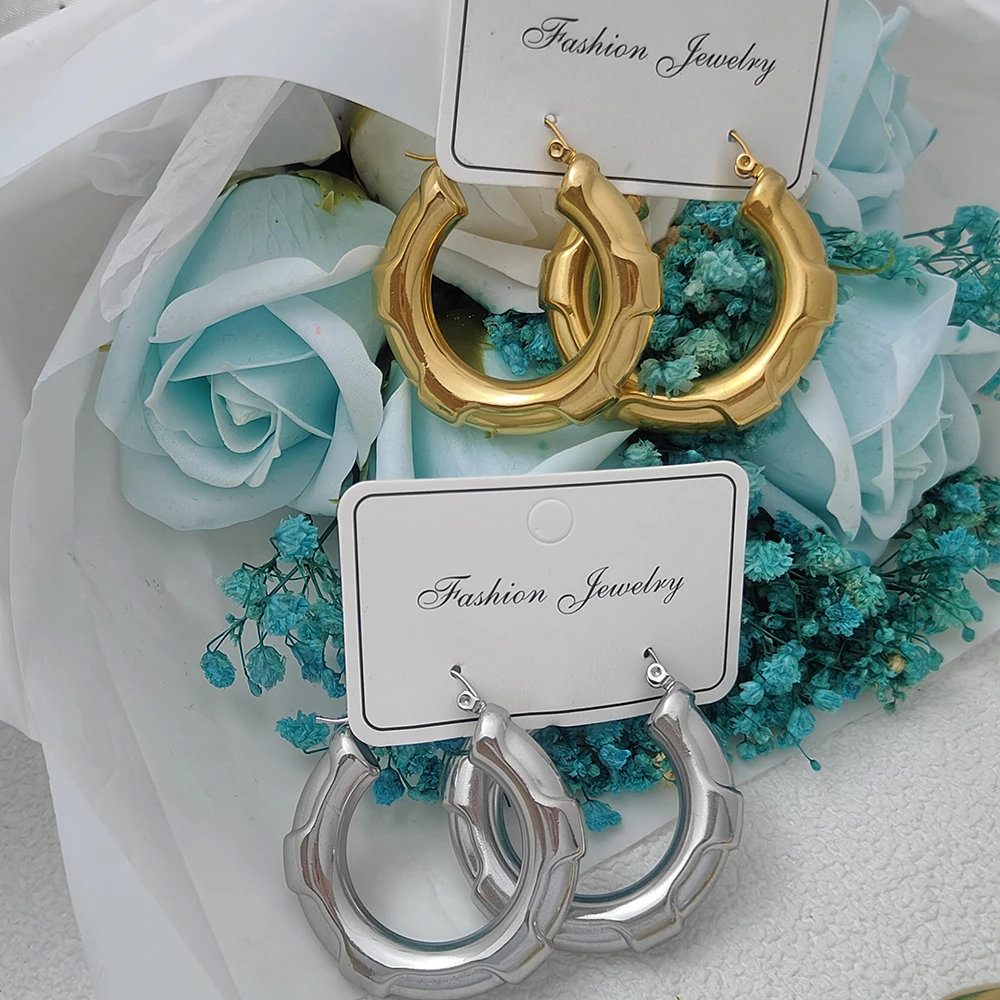 Женские серьги-кольца из нержавеющей стали с неровной поверхностью