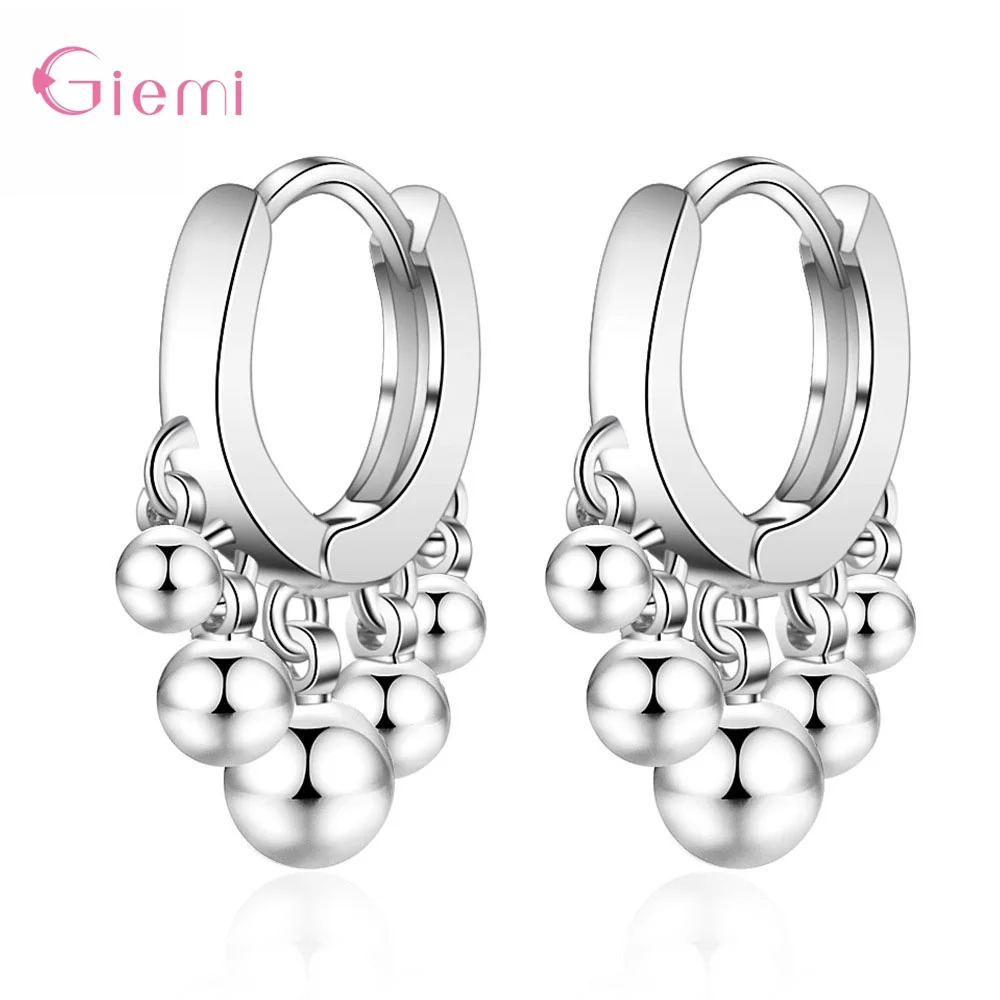 Женские серьги-кольца из серебра 925 пробы, с круглым шариком