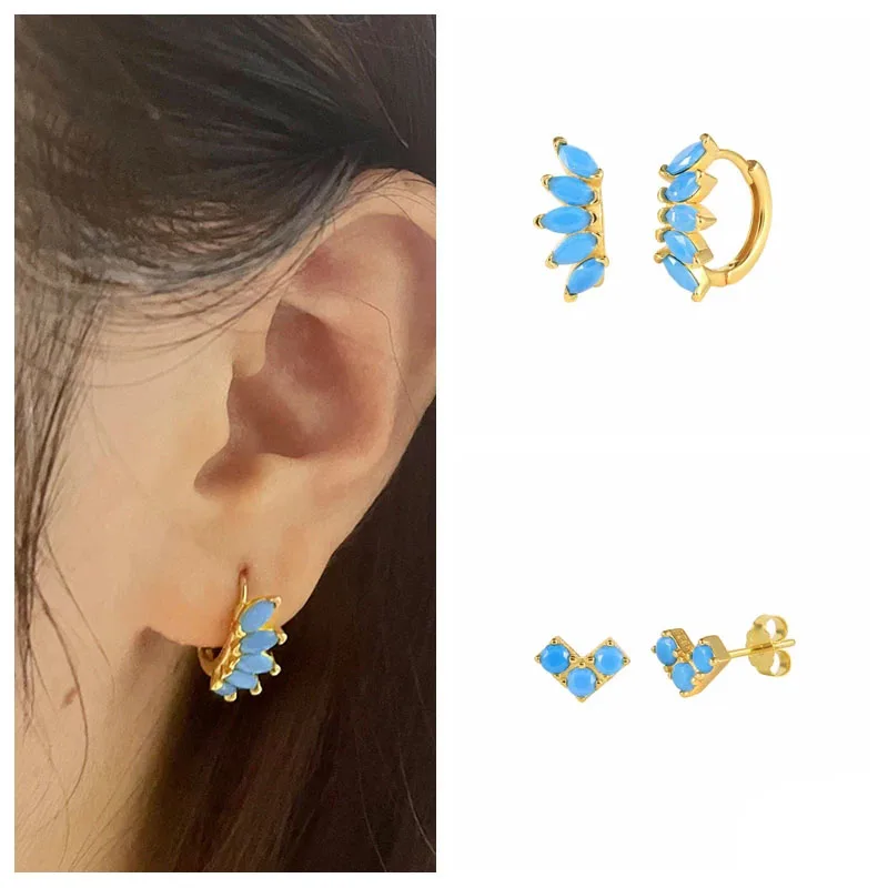Женские серьги-кольца с цирконом и короной, золотого и серебряного цвета