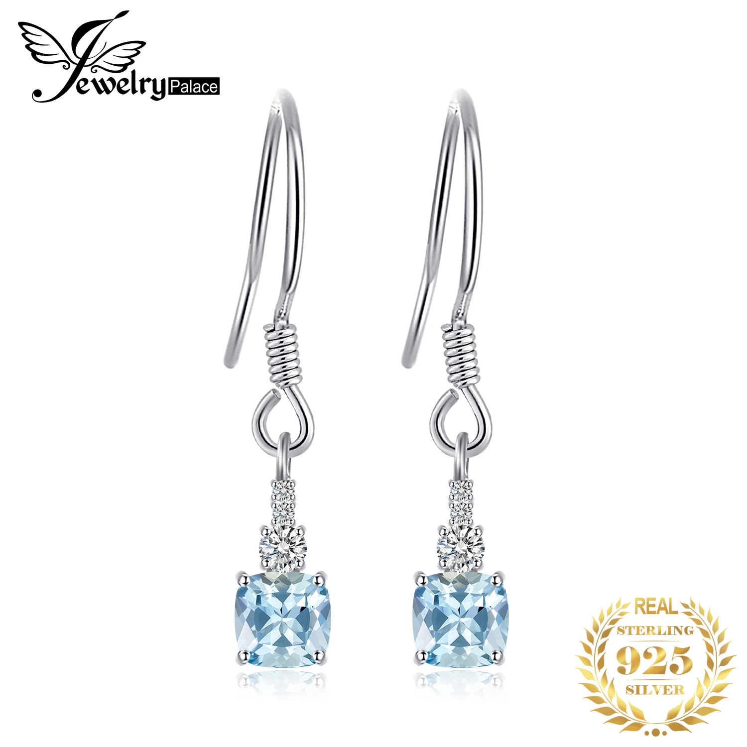 Женские серьги-подвески из серебра 925 пробы с натуральным голубым топазом карата
