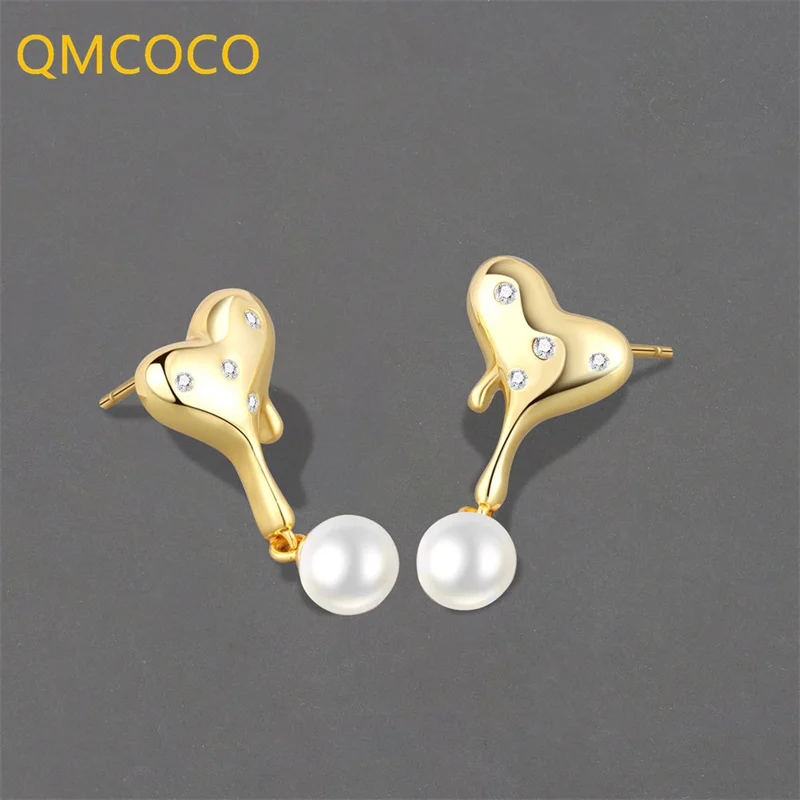 Женские серьги-подвески с жемчугом в форме сердца