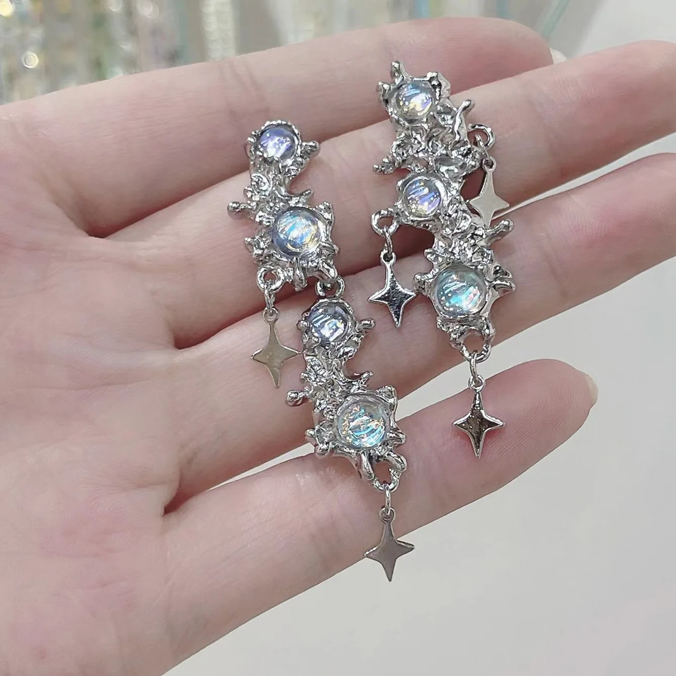 Женские серьги-подвески с опалом, в виде жидкой звезды