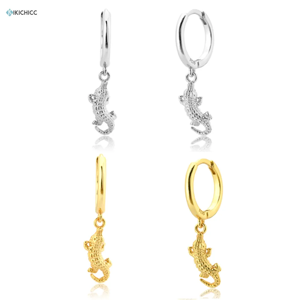 Женские серьги-подвески Kikichicc, в европейском стиле, из стерлингового серебра 925 пробы, с изображением крокодила, в стиле панк-рок