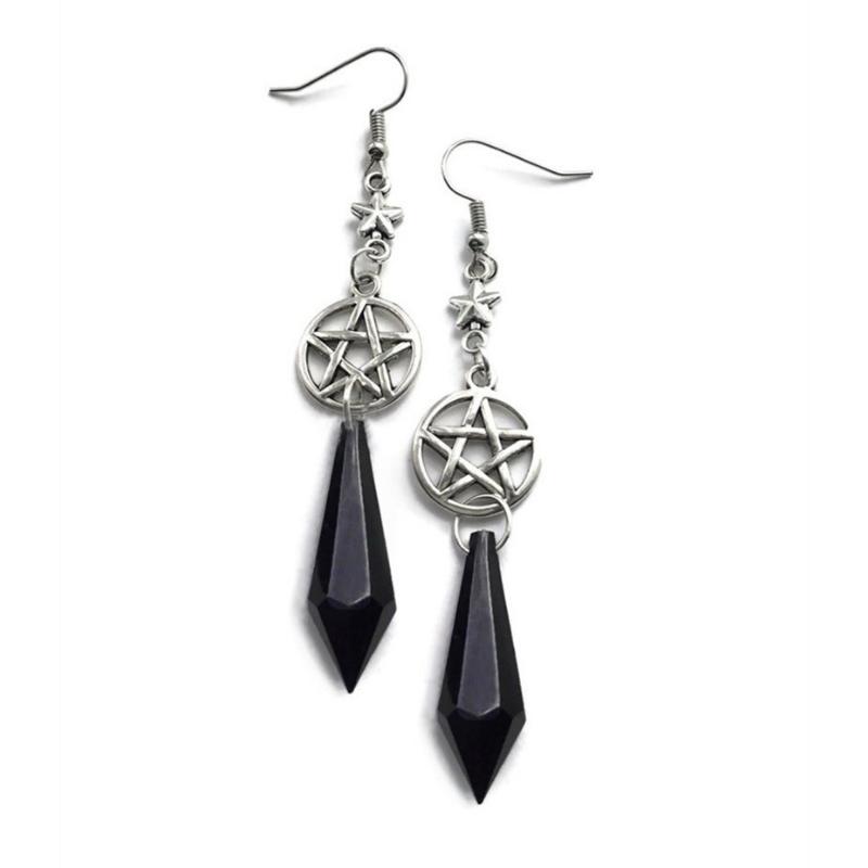 Женские серьги с кристаллами и серебром, черный цветок, полумесяц, пентаграмма, подарок на вечеринку чёрный