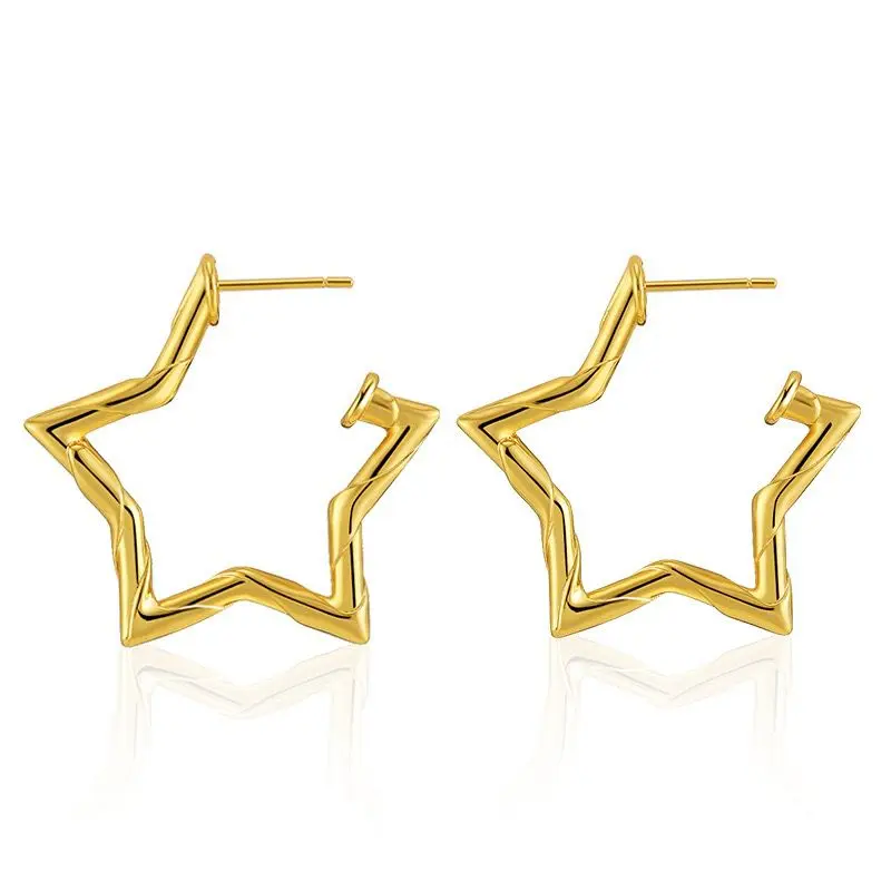 Женские серьги с круглыми линиями в европейском и американском стиле, золотые простые и маленькие Дизайнерские серьги с пятиконечной звезд...