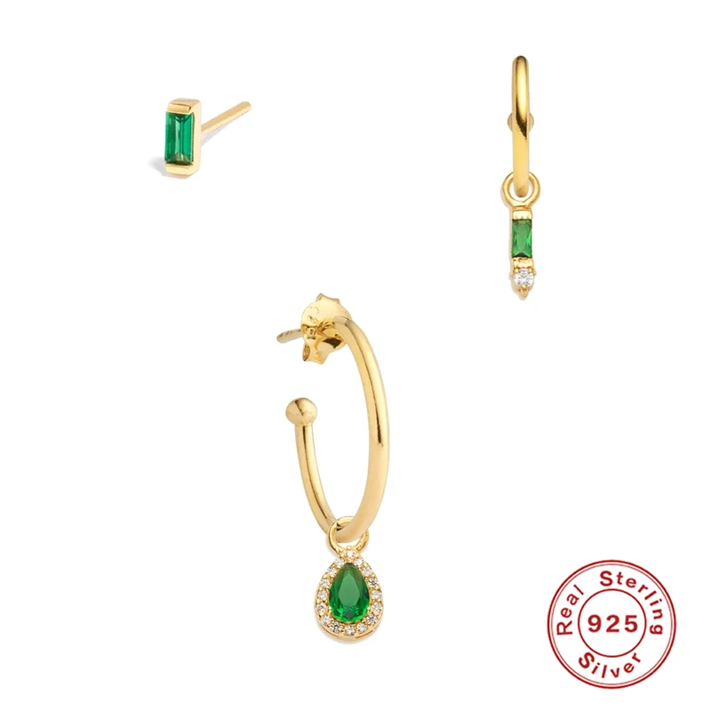 Женские серьги CANNER 3 шт./компл., серьги-гвоздики из стерлингового серебра 925 с зеленым цирконием, женские Украшения