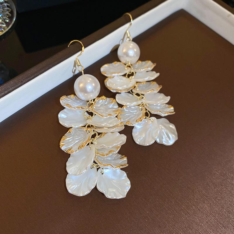Женские серьги GemChic, модные, с имитацией жемчуга, лепестками, кисточками, элегантные длинные серьги, подарок на день рождения, Рождество
