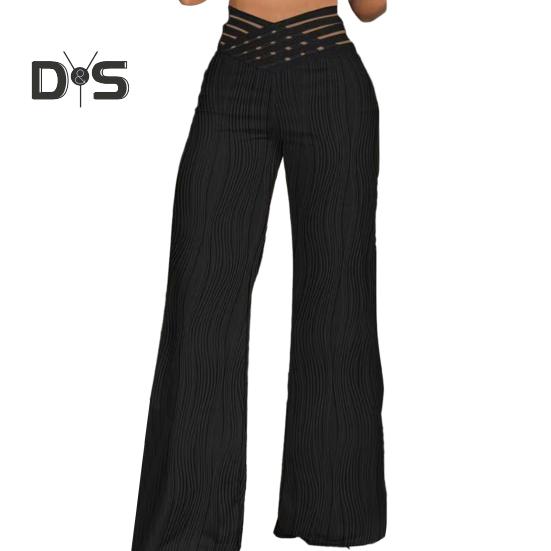 Женские сетчатые длинные брюки с высокой талией, прямые, широкие, с текстурой волн, однотонные повседневные брюки в уличном стиле M чёрный