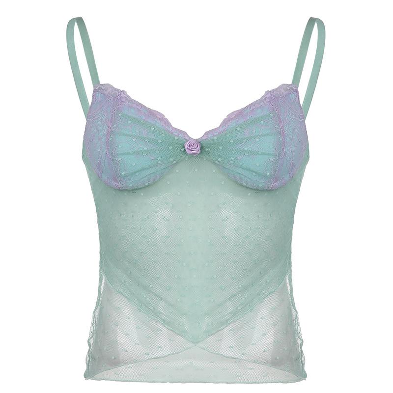 Женские сетчатые топы в горошек с лямкой на шее, кружевной перспективный жилет, укороченные топы M синий