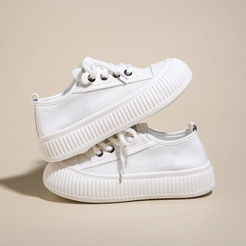 Женские сетчатые туфли, дышащие кроссовки на плоской подошве, на шнуровке, средний каблук, повседневная обувь с вырезами, искусственная обувь