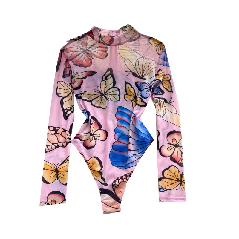 Женские сетчатые футболки с бабочками, привлекательные тонкие прозрачные сетчатые Футболки с длинным рукавом, топы
