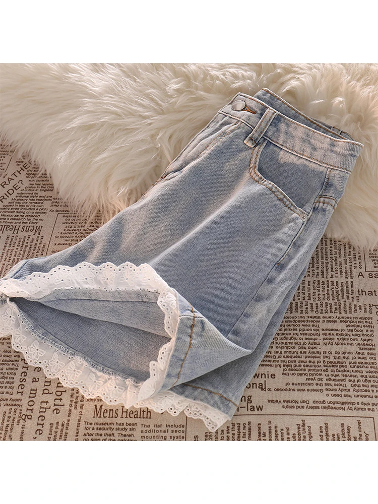 Женские синие джинсовые шорты, модные пикантные мешковатые кружевные лоскутные шорты с высокой талией, повседневные джинсы Y2k в Корейском стиле Харадзюку, лето 2023