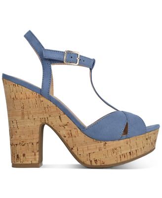Женские синие сандалии SUN STONE с Т-образным ремешком Jamie и круглым носком на блочном каблуке с ремешком на пятке, размер 10,5 м, Синий, 10008570900