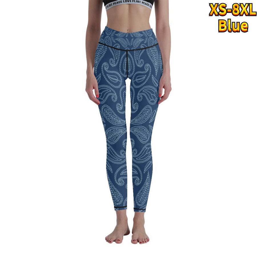 Женские синие эластичные леггинсы с принтами кешью для фитнеса, бега в тренажерном зале, спортивные брюки для активного отдыха XS синий