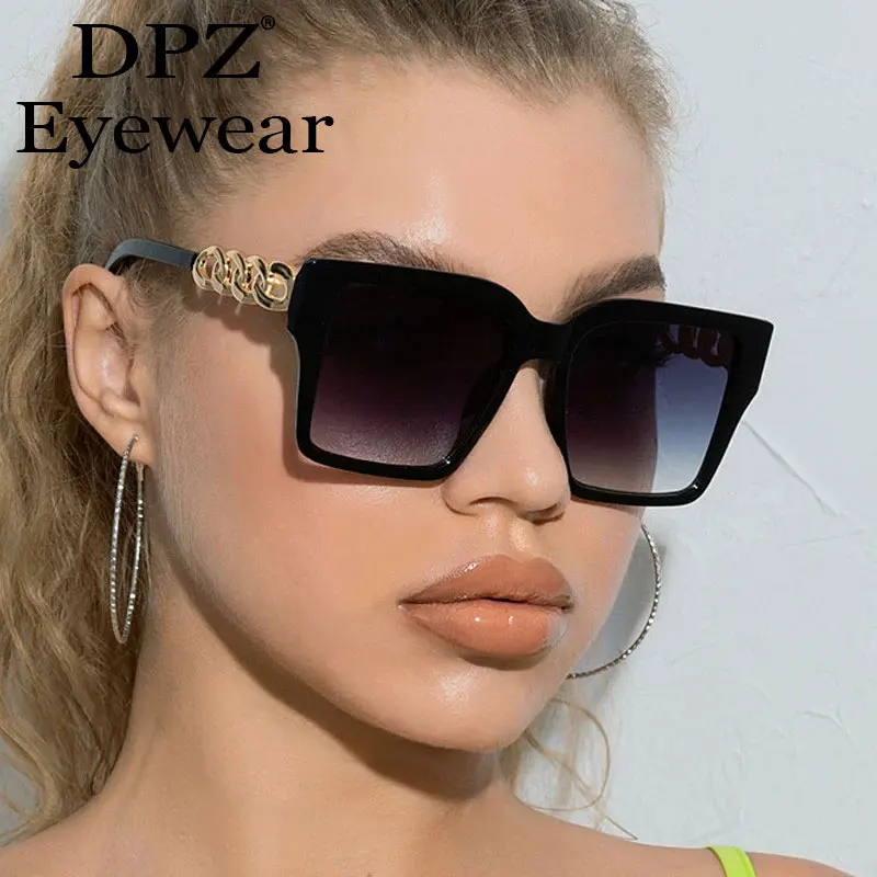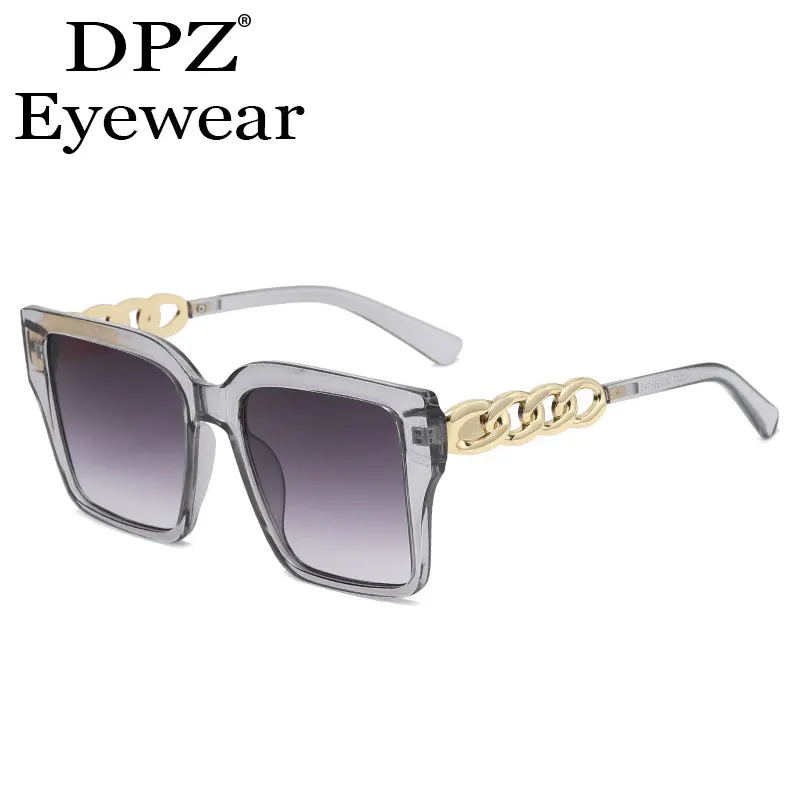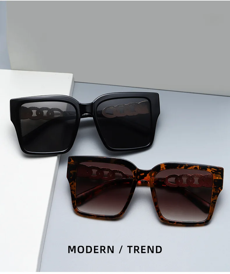 Женские солнцезащитные очки оверсайз с цепочкой и дужками из сплава