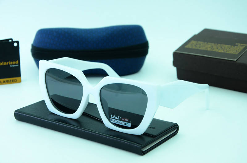 Женские солнцезащитные очки Leke квадратные в пластиковой оправе белого цвета и черными поликарбонатными поляризованными линзами .