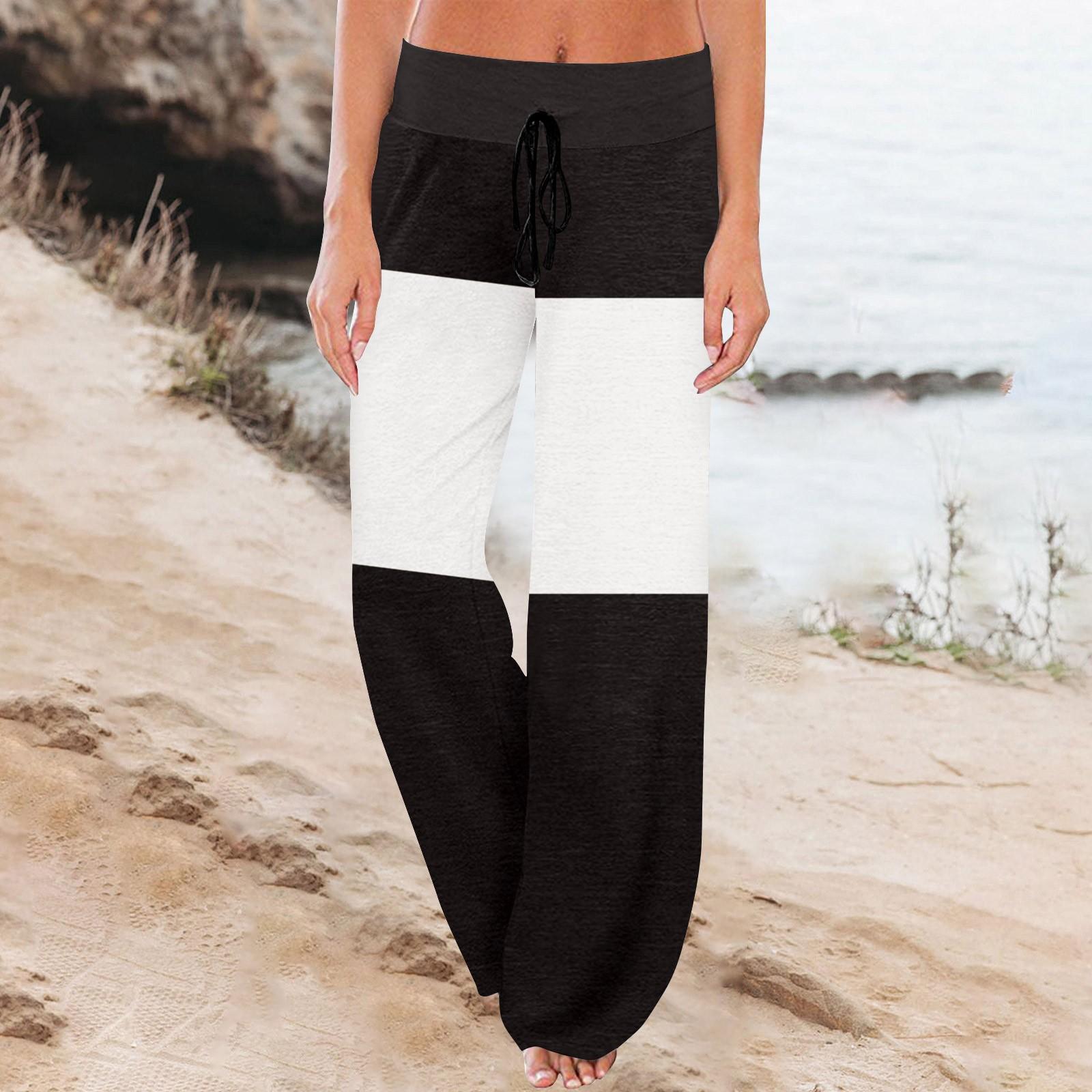 Женские спортивные брюки, спальные брюки, напечатанные широкие брюки на шнурке, повседневные брюки с карманами XL белый
