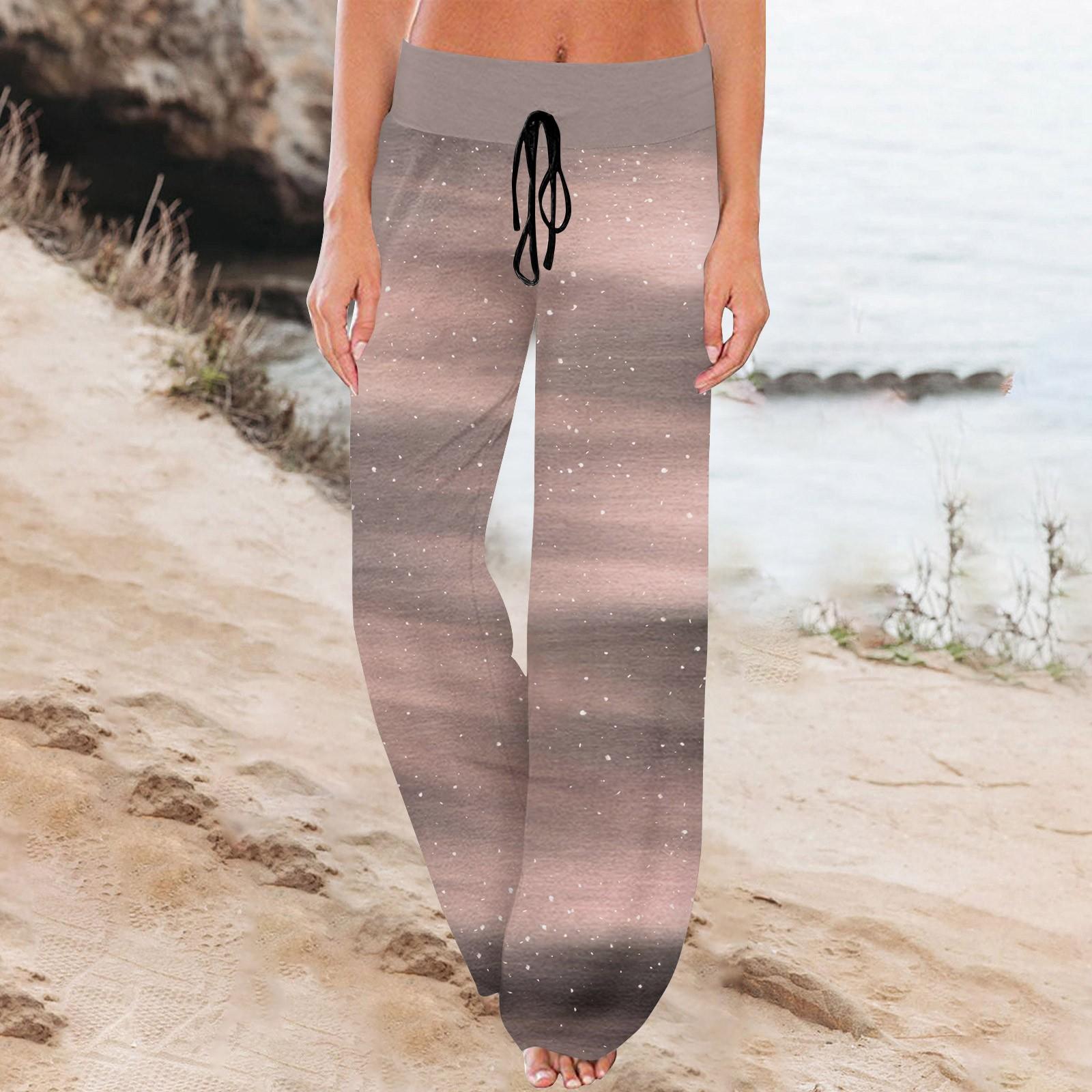 Женские спортивные брюки, спальные брюки, напечатанные широкие брюки на шнурке, повседневные брюки с карманами XL розового золота