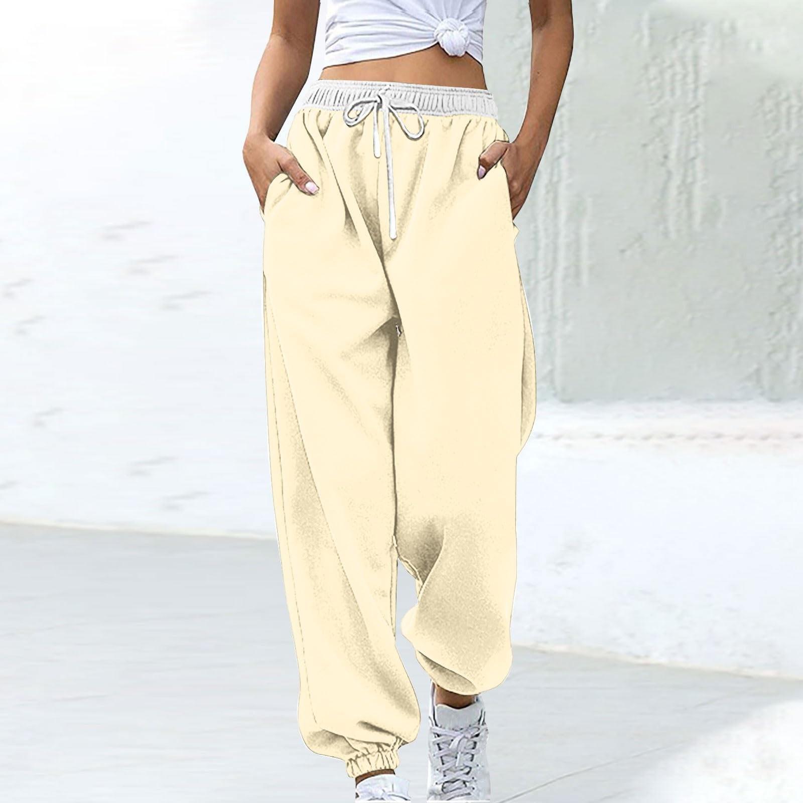 Женские спортивные брюки с карманом на ремне, модные, пэчворк, контрастная резинка на талии, повседневные спортивные брюки L бежевый