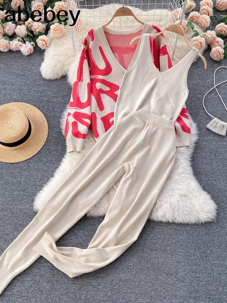 Женские спортивные костюмы, шикарный комплект из 3 предметов, костюм для гостиной, кардиган, свитер + брюки-джоггеры + майка без рукавов