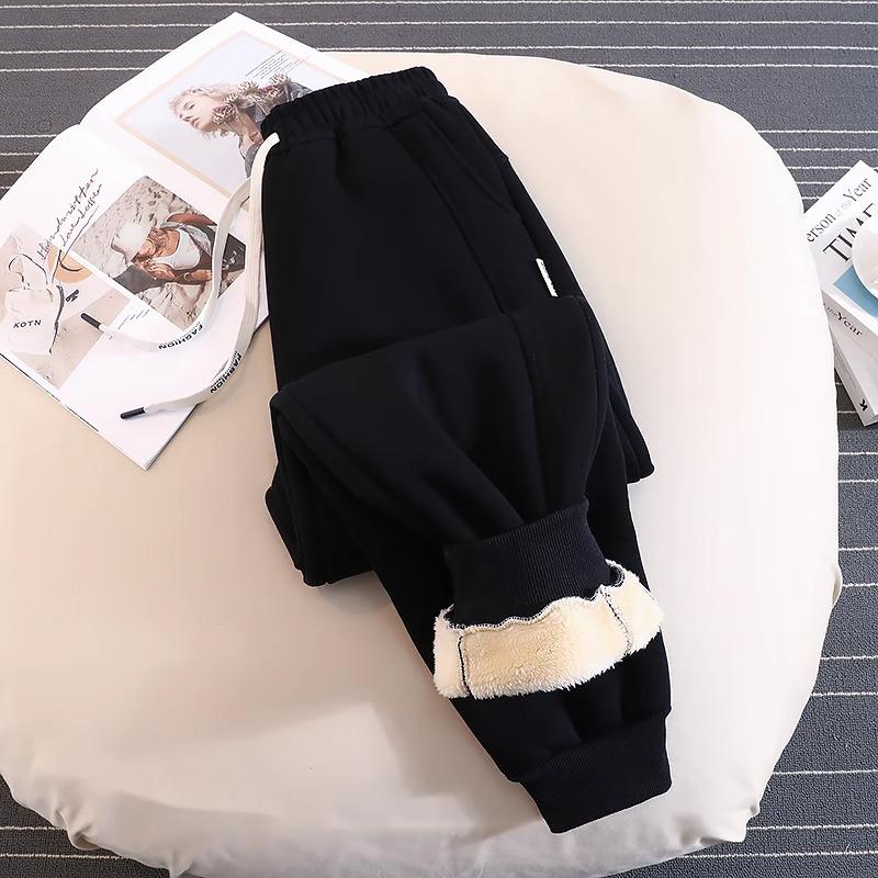 Женские спортивные штаны на флисовой подкладке из овечьей шерсти - Толстые, теплые, с манжетами джоггеры для осени/зимы 2024 XL