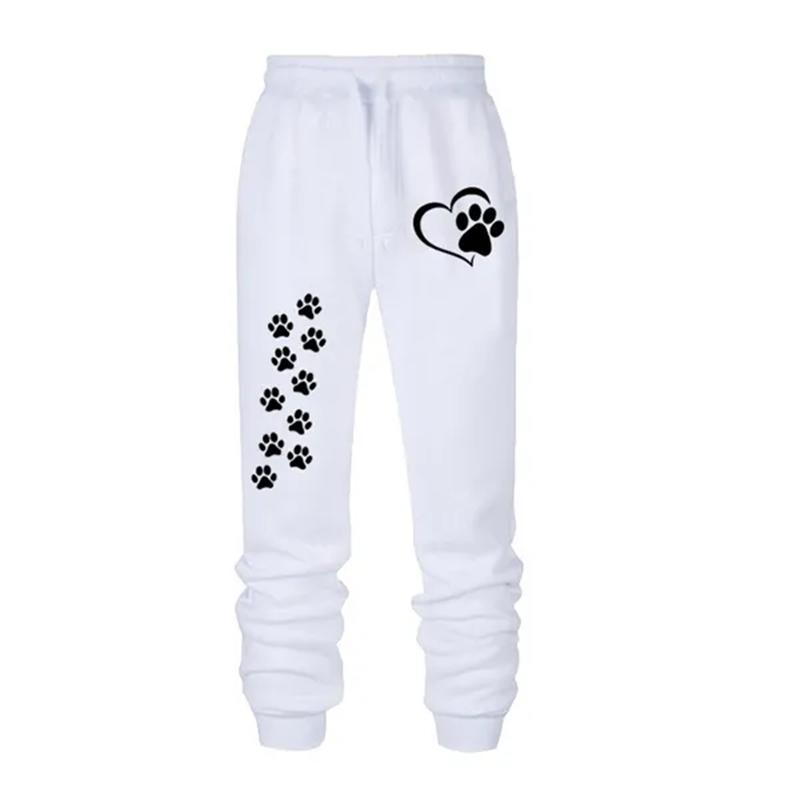 Женские спортивные штаны с принтом кошачьих лапок, высококачественные фитнес-штаны, штаны для бега, уличные повседневные штаны для бега S белый