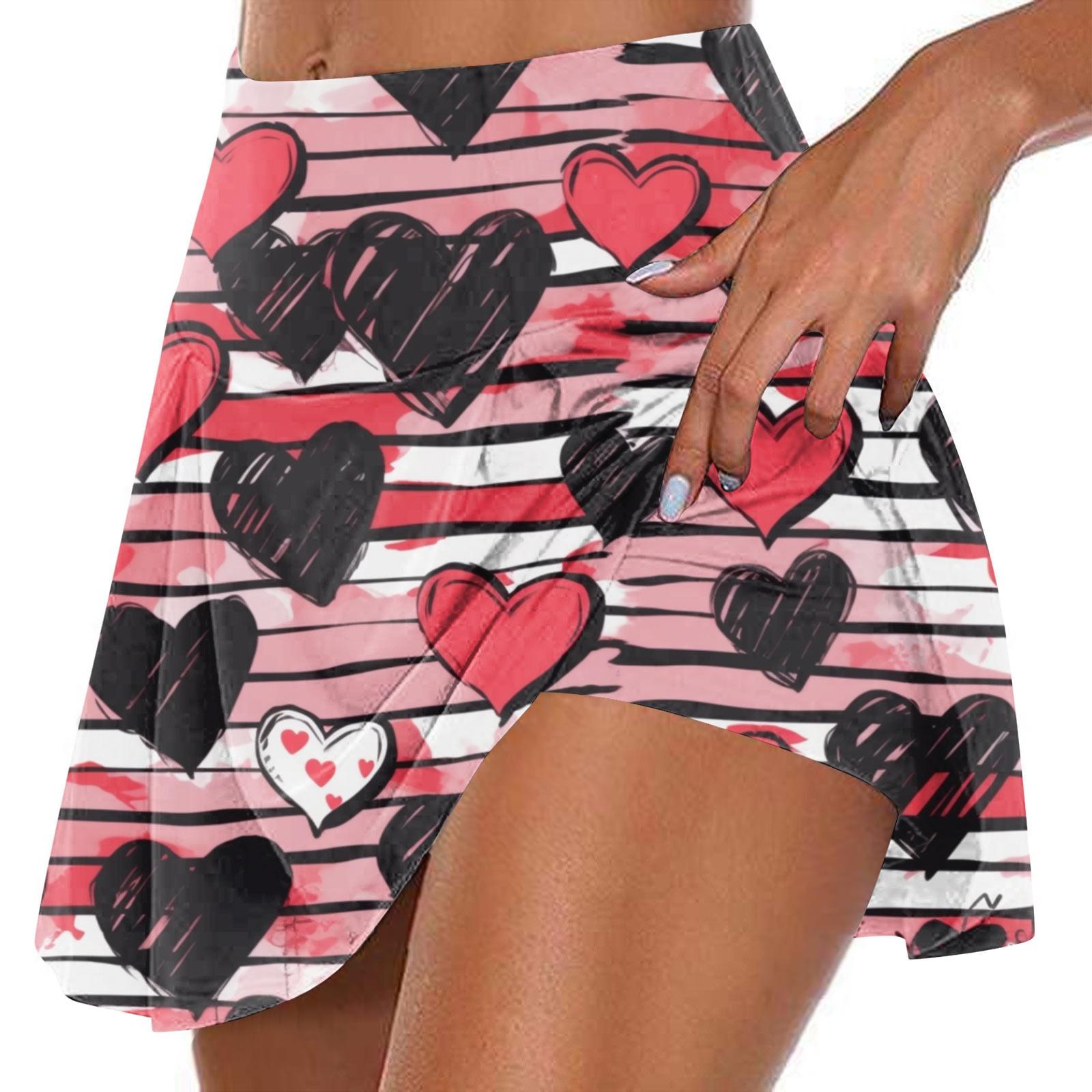 Женские спортивные эластичные плиссированные теннисные юбки с принтом ко Дню святого Валентина, внутренние шорты для занятий йогой, эластичные спортивные шорты для гольфа XXL чёрный