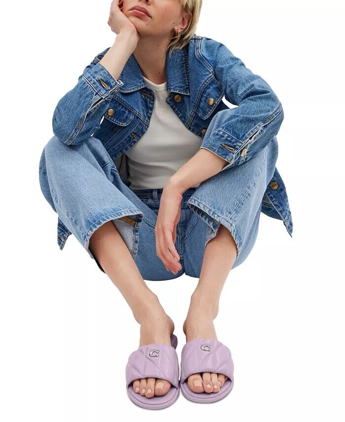 Кожа с ромбовидной стежкой придает мягкую текстуру великолепному дизайну фирменных шлепанцев COACH Holly.